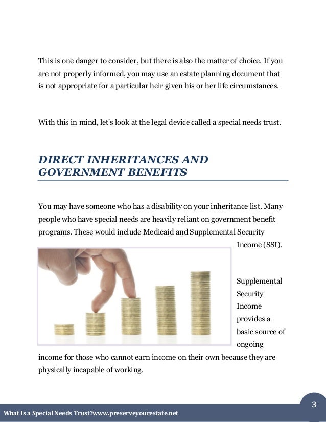 Hold real estate in a special needs trust (SNT), but there are also many pitfalls a trustee must be aware of to avoid liability  Orphan’s Ct. R. 14.4. 3 42 U.S.C. § 1382b (2012); see also Social Security Program Operations Manual Sys-  ... Read Document