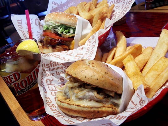 RED ROBIN’S FINEST BURGERS Our Finest lineup is made with premium ingredients, artisan touches and sophisticated flavors  RED ROBIN GOURMET CHEESEBURGER. Red’s pickle relish, red onions, pickles, lettuce, tomatoes, mayo and your choice of cheese. 9.79 cal 850-920. KEEP IT SIMPLE.  ... Content Retrieval
