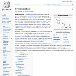 Hypothyroidism: Diagnosis and Screening, Genetic Influences, and Treatment Options  We describe current treatments for hypothyroidism, but we will put special emphasis  low iodine availability due to diet deficiencies and environmental pollution, and/or hypothalamic or adenohypophyseal  ... Access Full Source